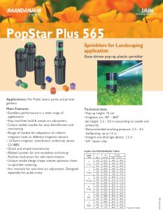 POPSTAR 565 NOZZLE 6.0 สปริงเกลอร์ Gear-driven pop-up plastic sprinkler NAANDANJAIN รุ่น : NA565 6.0 รุ่น POPSTAR 565 ยี่ห้อ : NAANDANJAIN รุ่น : NA565 6.0 ป๊อบอัพอิมแพ็คสปริงเกลอร์ ชนิดปรับทิศทางได้ เกลียวในขนาด 3/4″ 3กหัวสูง 3 นิ้ว (**ติดต่อสอบถามราคาอาจมีการเปลี่ยนแปลง**)