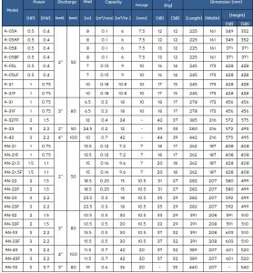 A-31 HCP PUMP รุ่น A-31 HCP PUMP 3″ 1.0 HP 220 V คุณสมบัติ : สายไฟหุ้มด้วย Epoxy resin ป้องกันน้ำเข้า, แมคคานิเคิลซีล 2 ชั้น, มีระบบ Auto-cut, มอเตอร์แห้ง (ยกเว้นรุ่น A-05, มอเตอร์หล่อเย็นแบบน้ำมัน และซีลชั้นเดียว (CA/CE) (***ติดต่อสอบถามราคาอาจมีการเปลี่ยนแปลง***)