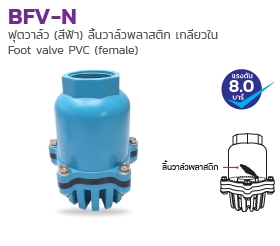 BFV-N 400 ฟุตวาล์ว (สีฟ้า) 400 ฟุตวาล์ว (สีฟ้า) ลิ้นวาล์วพลาสติก เกลียวใน Foot valve PVC (female) ขนาด 4″ (***ติดต่อสอบถามราคาอาจมีการเปลี่ยนแปลง***)