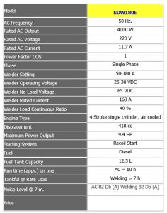 SDW180E เครื่องปั่นไฟฟ้าดีเซล (แบบเชื่อม) (***ติดต่อสอบถามราคาอาจมีการเปลี่ยนแปลง***)