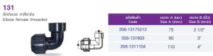 131 ข้อต่องอ เกลียวใน ขนาด 90 mm. x 3″ Elbow female threaded ขนาด 90 mm. x 3″ (***ติดต่อสอบถามราคาอาจมีการเปลี่ยนแปลง***)