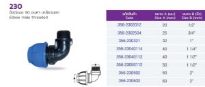 230 ข้อต่องอ 90 องศา เกลียวนอก ขนาด 25 mm.x3/4″ Elbow male threaded ขนาด 25 mm.x3/4″ (***ติดต่อสอบถามราคาอาจมีการเปลี่ยนแปลง***)