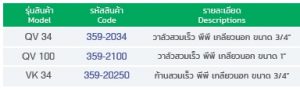 - QV วาล์วสวมเร็ว พีพี เป็นวาล์วในตัว น้ำจะปิดทันทีที่ถอดก้านสวมเร็วออก เพื่อสะดวกในการเปลี่ยนย้ายหัวสปริงเกลอร์ ใช้งานคู่กับก้านสวมเร็ว พีพี VK